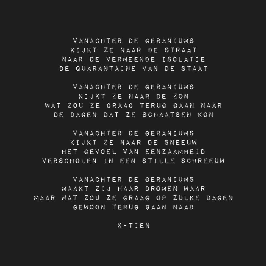 Maar mijn mannen hebben hun eigen leven naast het thuis-leven. Ze hebben gelukkig hun werk en school, ze hebben collega’s en mede-scholieren, een leven waar ik geen deel van uit maak. Dat is goed hoor, ik had ook zo’n leven, ik mis dat leven. Ik mis die andere ik. Die ik die iets te vertellen had, die misschien wel iets te vaak rondhing in de wandelgang maar een goed contact had met de meeste collega’s. De ik die zich graag bemoeide met het reilen en zeilen van eigenlijk alles, vooral van zaken die me niet aangingen.
