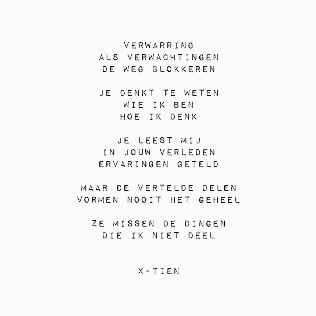 Uit alles wat ik hoor, zie en voel trek ik conclusies. Altijd, met mijzelf als uitgangspunt. Ik weet niet hoe ik de wereld anders moet interpreteren.