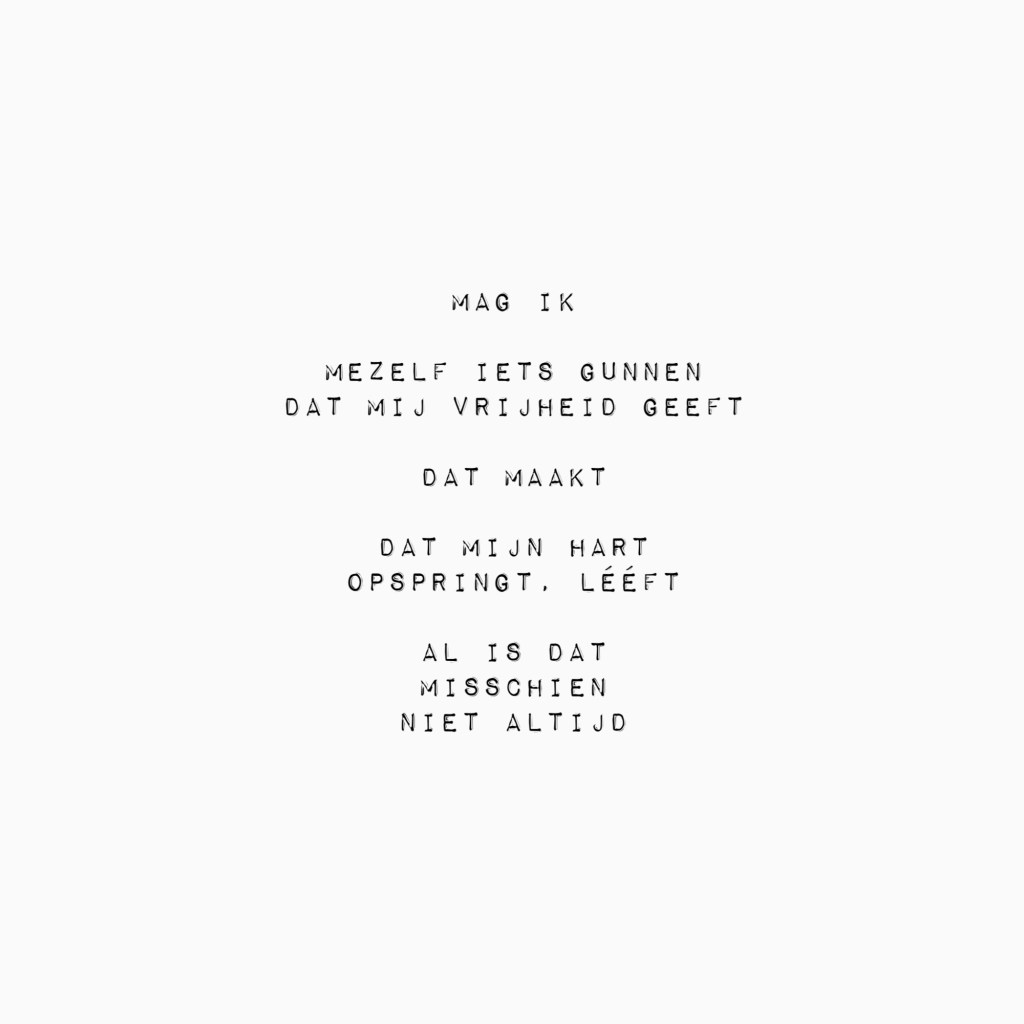 Ik wil niet terug naar die situatie. Al ben ik bij lange na nog niet gezond, ik ben gezegend, dat ik op het punt ben waar ik nu ben. Dat ik weer mag leven in plaats van dingen aan de zijlijn te moeten beleven. En dat beleven is een te groot woord voor wat het echt is, want je doet niet mee, telt niet mee, voor je gevoel. En ik weet het, écht!
